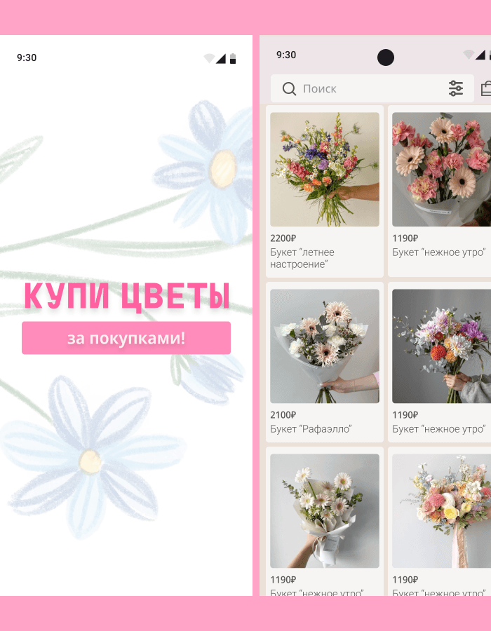 Дизайн мобильного приложения для онлайн-магазина цветов. Работа выполнена в Figma с учетом современной UI-логики